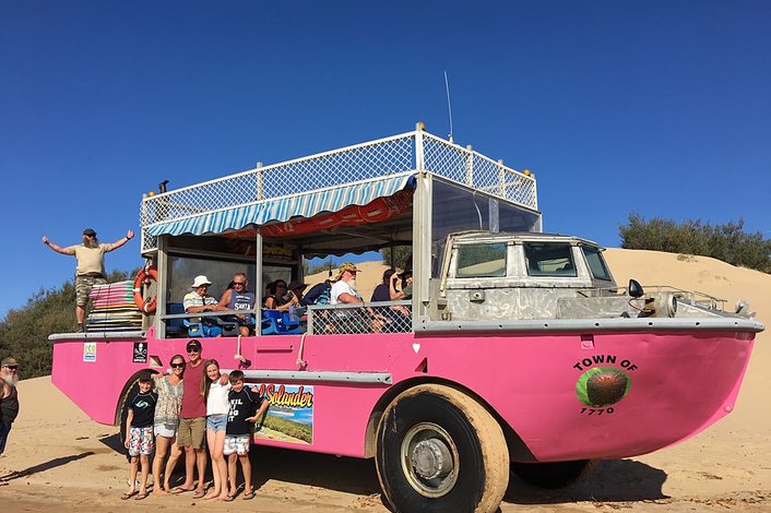 For a trip you will never forget, jump aboard the pink LARC, an amphibious craft that will take you for a ride across deserted sandy beaches and pristine estuaries as you make your way to the isolated Bustard Head Lighthouse located within Eurimbula National Park. You'll hear the tales of tragedy and triumph as early white settlers and lighthouse keepers struggled to tame this remote wilderness. You will see some of the prolific wildlife that inhabits the area and you will gasp in awe at the spectacular panoramic view from the historic Bustard Head Lighthouse.
