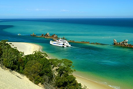 For a quick island getaway, take advantage of a cruise across glistening Moreton Bay and spend a few hours soaking up the atmosphere of Tangalooma Resort set on spectacular Moreton Island. This island is one of the few sand islands in the world and you can lay back and soak up the atmosphere or get along to Island Guest Relations and participate in one of the many activities on offer. Included in your day is your choice of either a Sand Tobogganing 4wd tour, or a Marine Discovery Cruise, or a Jet Boat Ride, or a 1,5hr Snorkel Tour, plus you can take advantage of the many free and paid activities on offer such as hire of snorkel gear, play mini golf or volleyball, try your hand at archery...or a list of other fun activities.